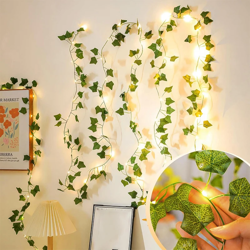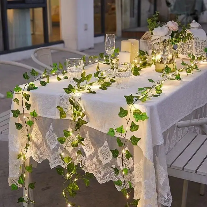 2m Silk Green Leaf Ivy Vine LED String Lights Artificial Plant Decoration for Home Wedding Hanging Garland Fake Creeper