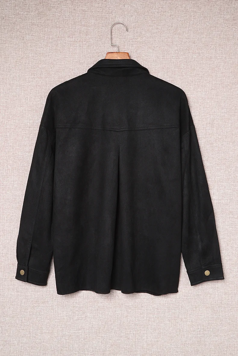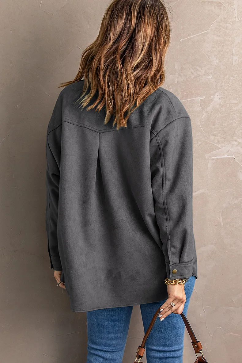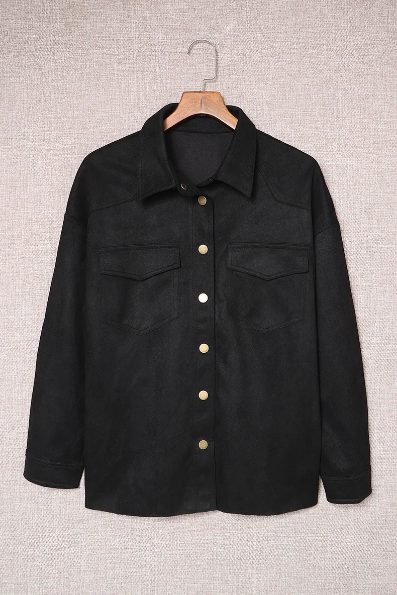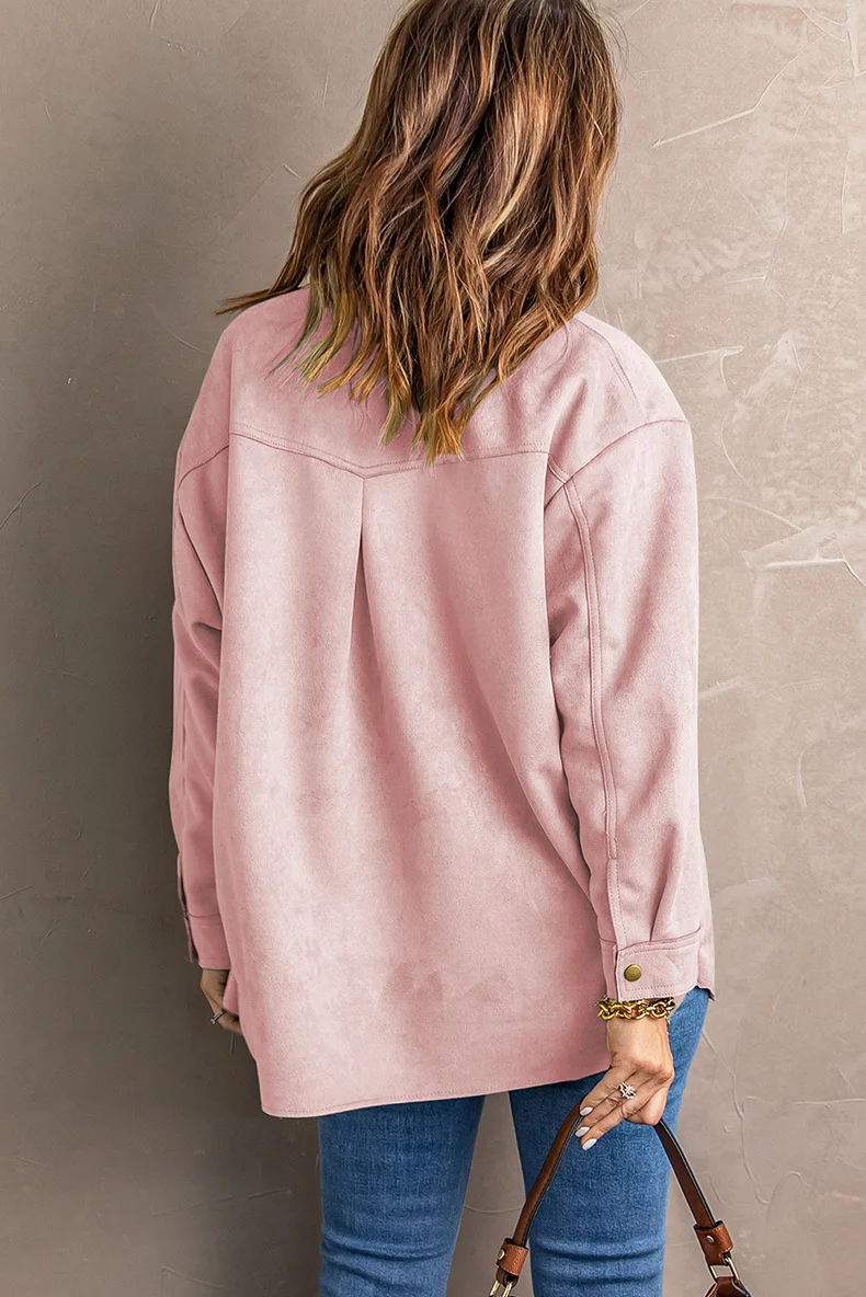Ensfarget semsket skinnjakke med knapp