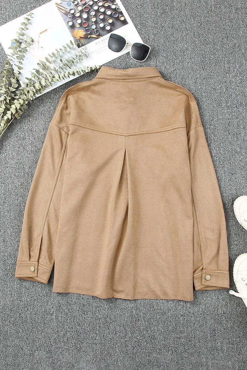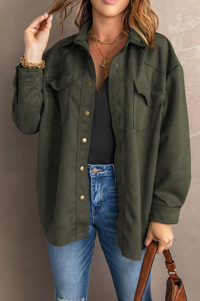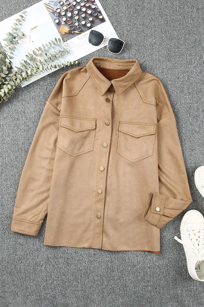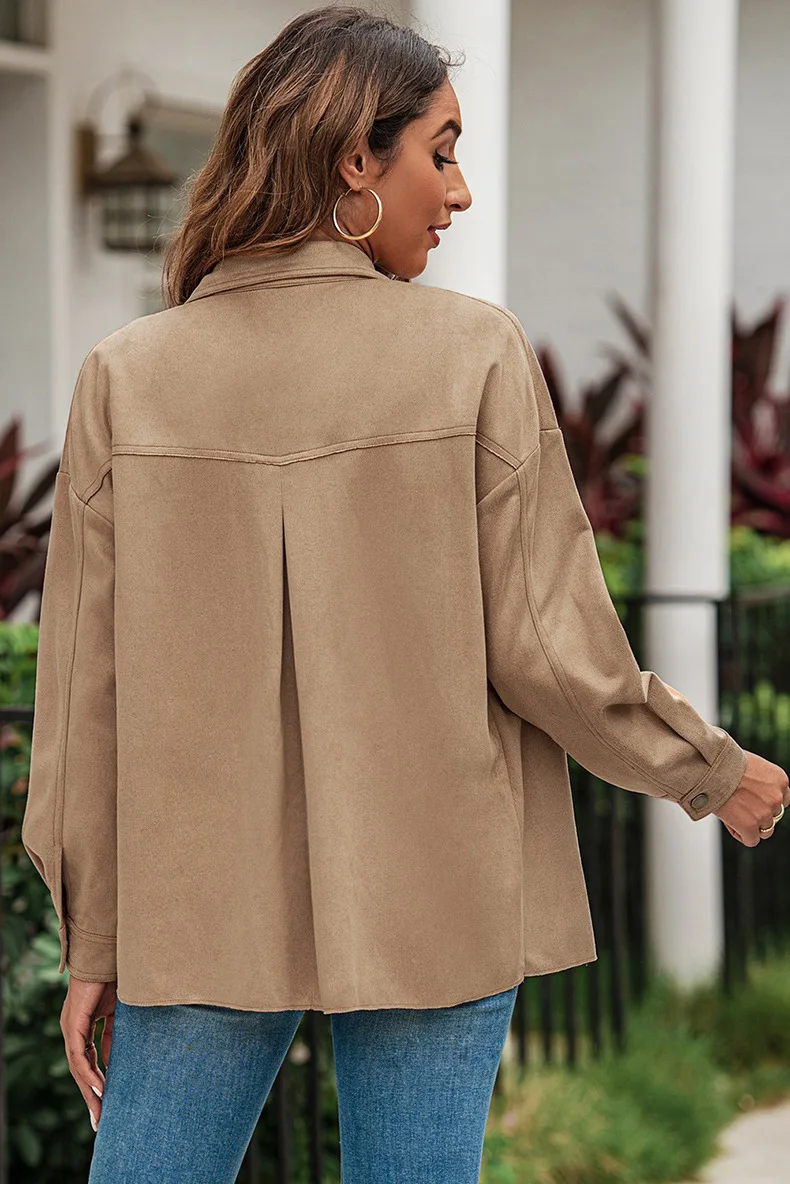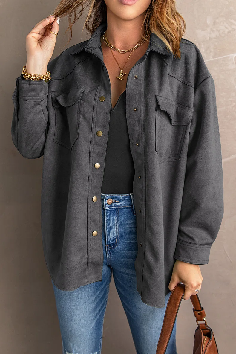Ensfarget semsket skinnjakke med knapp