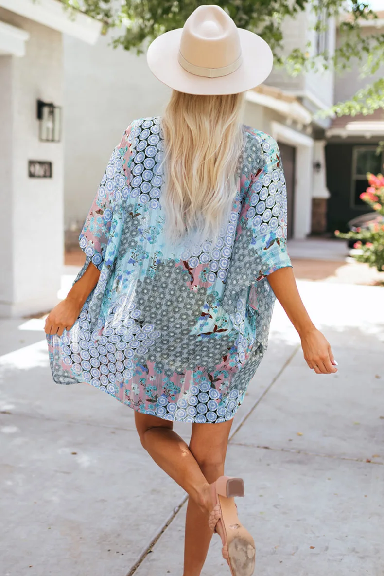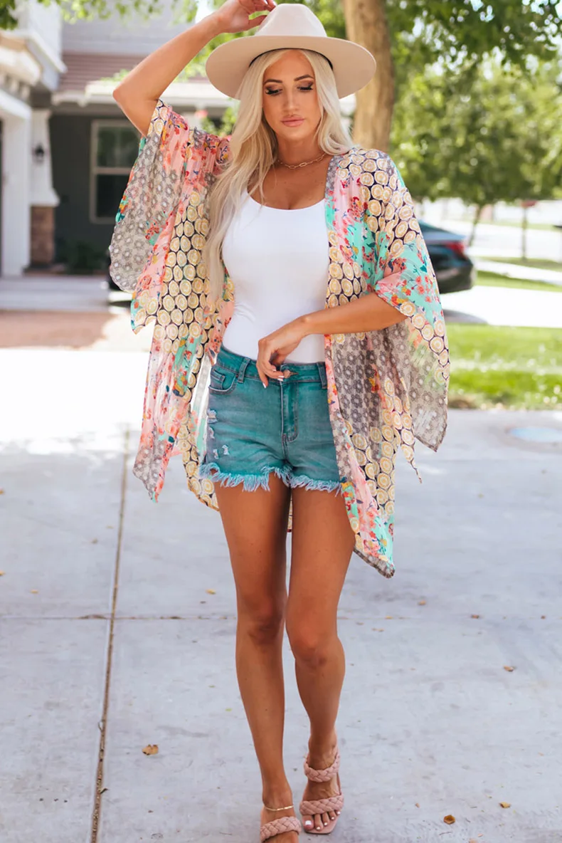 Fargerik lett skjorte stil Beach Cover Up