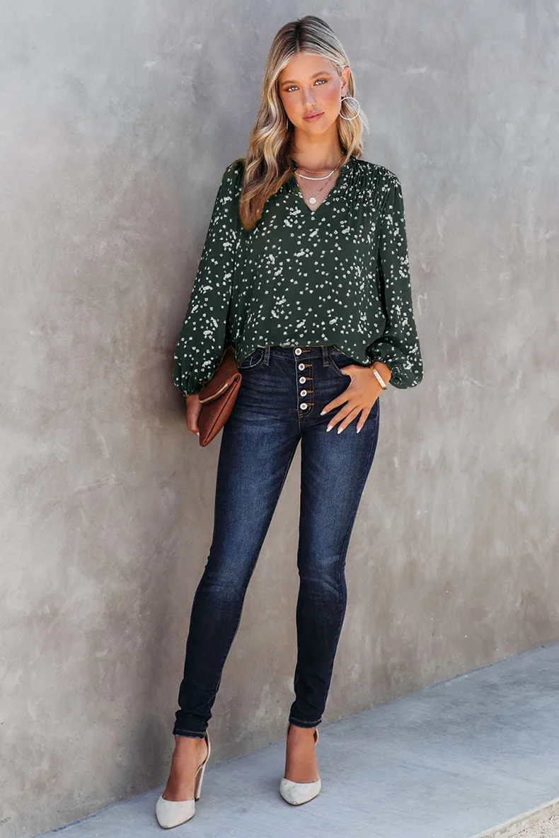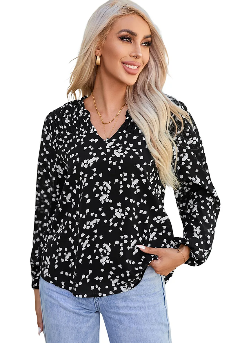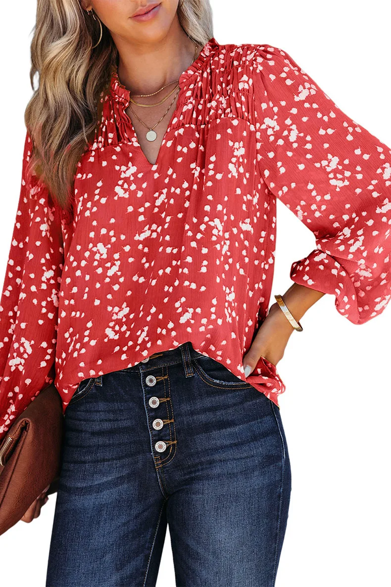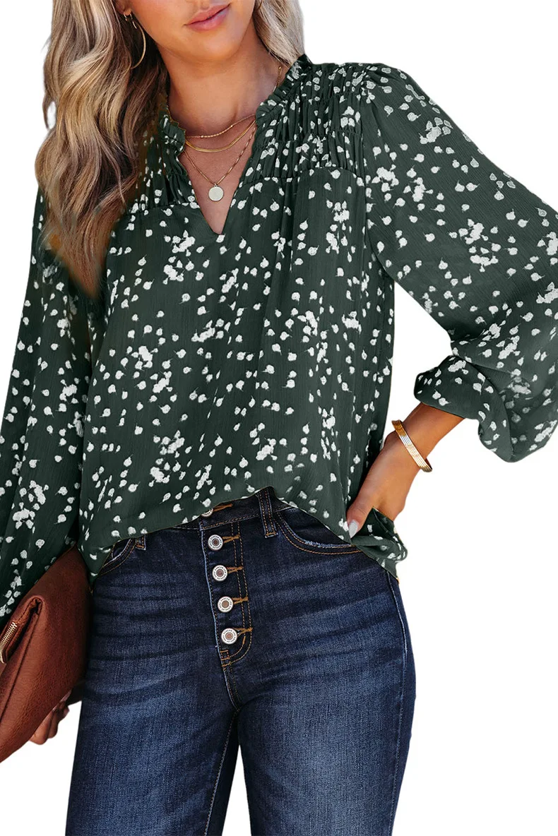 Gul romantisk trykk rynket chiffonskjorte