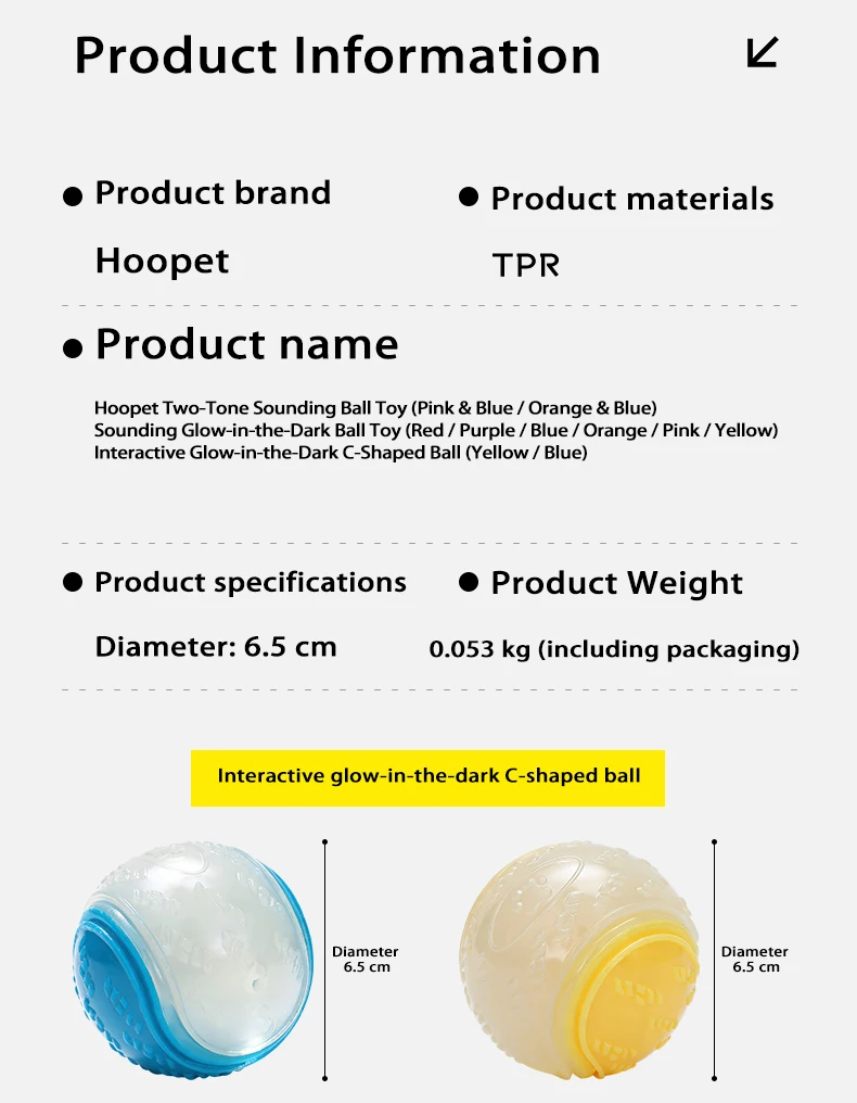 HOOPET Glow Dog Toy Ball Durable Rubber Border Collie Labrador Energy Consumption Puppy Pet Fetch Ball
