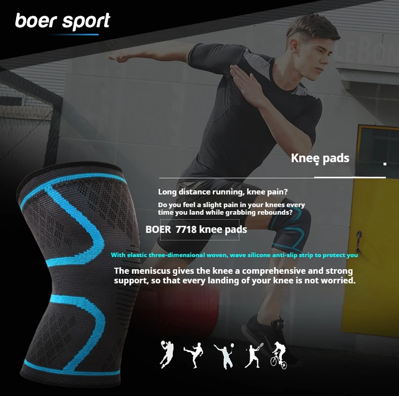 Knitted sports knee pads, running basketball, cycling fitness, anti slip, breathable nylon knee pads for men and women