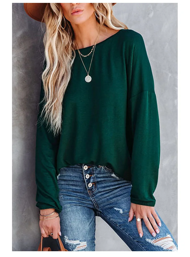 Langermet genser med rund hals for kvinner