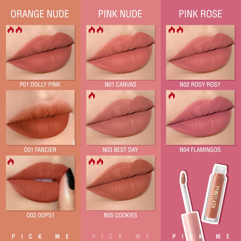 PINKFLASH Ligloss Matte Lipstick Soft Moisturizing Red Nude Pink Melting Lip Cream Waterproof Makeup Not Fade Lip Gloss Liptint