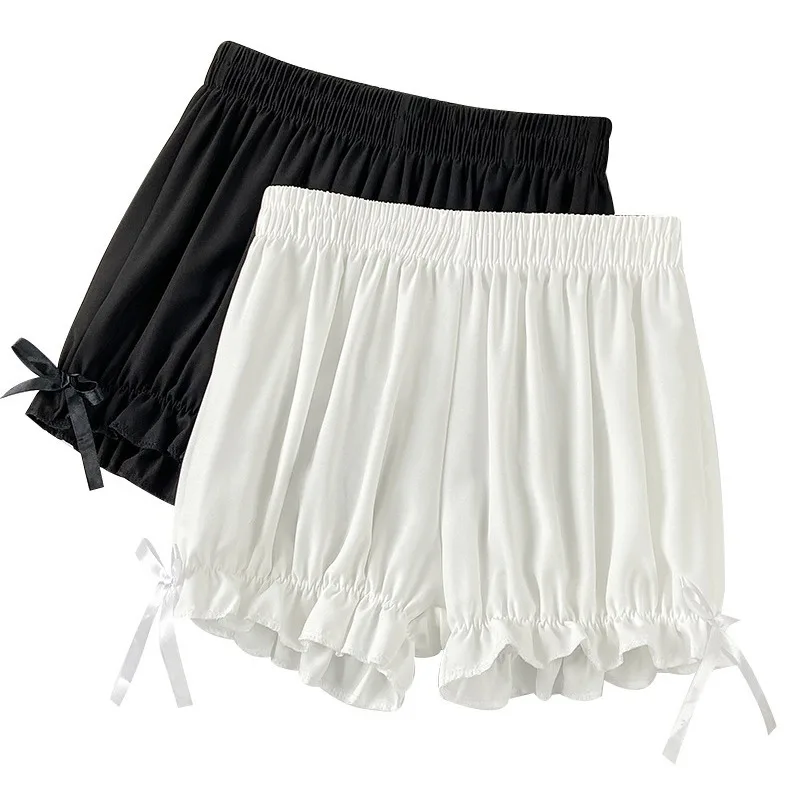 Women Lace Short Panties Imitation Silk Ruffle Bloomers Anti Exposure Safety Pants Lolita Satin Knickers Shorts Dress Pettipant